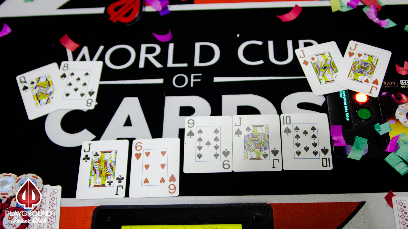 Kontonatsios naik menjadi € 42.976 dan setelah banyak berpikir, Galfond pindah total untuk total € 47.173. Disebut Kontonatsios dengan 9 Setelan Sekop7 Setelan Sekop5 Setelan Sekop4 Jas Berlianuntuk menjatuhkan sepuluh-tinggi lurus. Galfond memiliki J Jas Berlian10 Setelan Sekop10 Jas Berlian7 Jas Jantunguntuk set teratas dan hasil imbang lurus gutshot. QBaju Klubtidak membantu Galfond dan pot € 115.943 dikirim ke Kontonatsios. Meskipun menang, Galfond masih memegang lebih dari € 320.000 setelah lima sesi pertama.